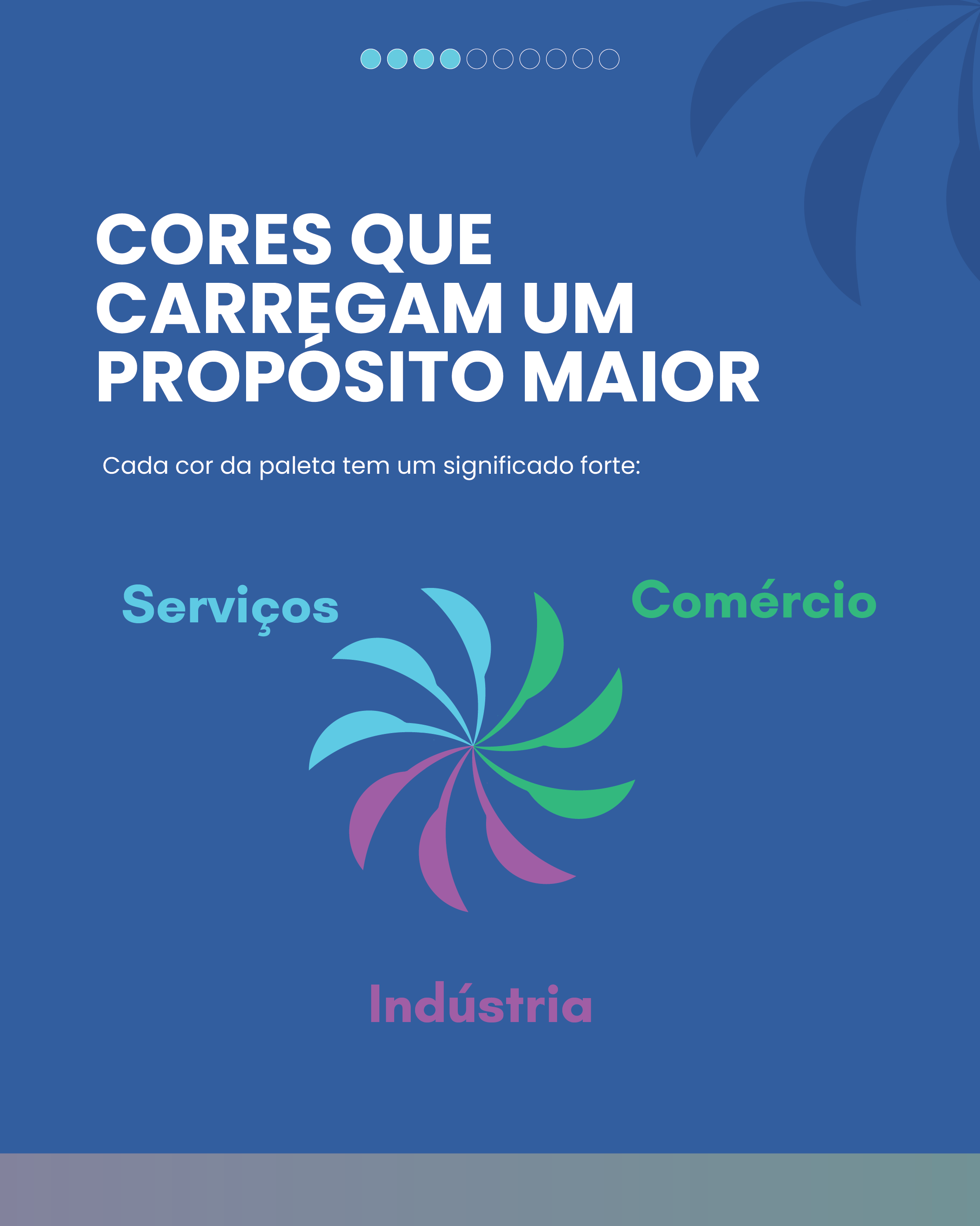 As cores institucionais carregam significados que reforçam o papel da CACIS na cidade: o verde simboliza prosperidade, equilíbrio e desenvolvimento, associado ao comércio e ao ciclo da natureza que se renova e cresce; o roxo representa a força da transformação, da criatividade e da inovação, traduzindo a indústria como setor que impulsiona tecnologia, visão de futuro e adaptação constante; já o azul transmite estabilidade, segurança e profissionalismo, essencial para os serviços, setor em que a confiança, a credibilidade e o relacionamento fortalecem conexões e geram valor.